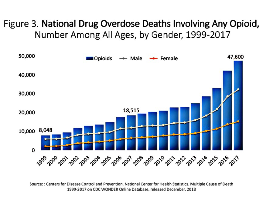 Chart of National Drug Overdose Death Involving Any Opioid,